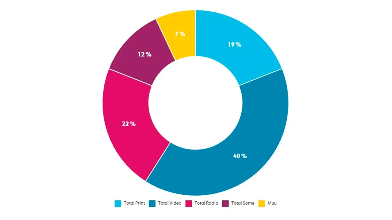 Käytämme medioita monipuolisesti. Pitkin päivää selailemme somekanavia, luemme printtimedioita ja mobiiliuutisia, kuuntelemme radiota ja podcasteja sekä katsomme telkkaria ja suoratoistopalveluita.