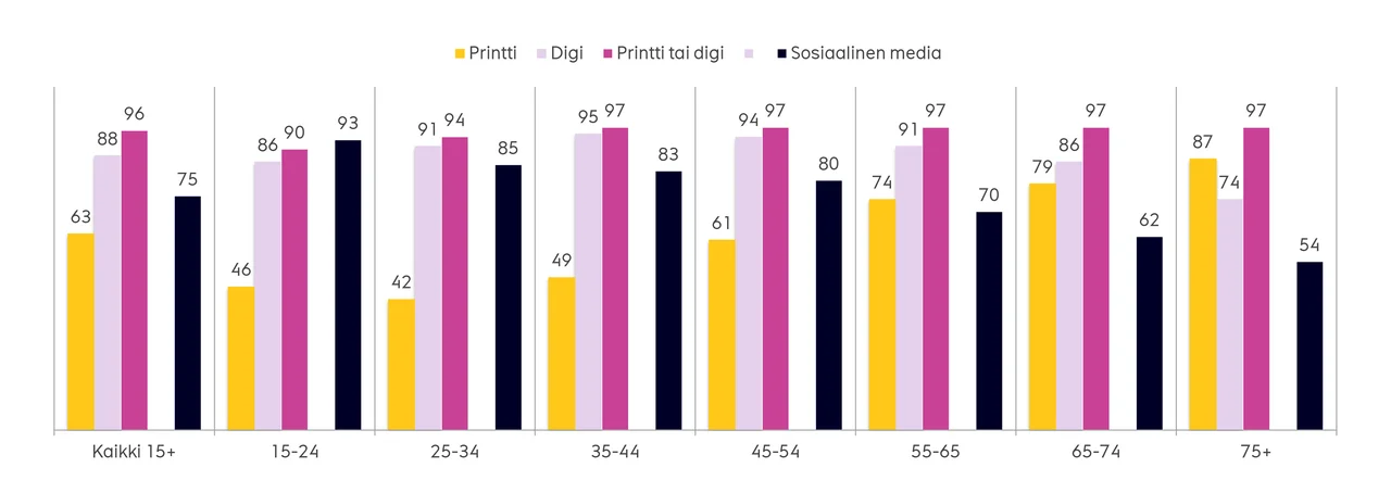 Digimedioiden tavoittavuus ikäryhmittäin