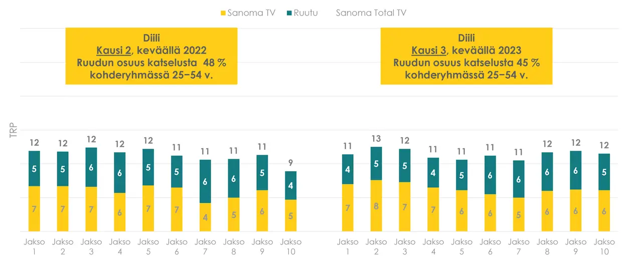 Diili- jaksot 1-10: Diili kiinnostaa Ruudussa 25−54 -vuotiaiden kohderyhmässä