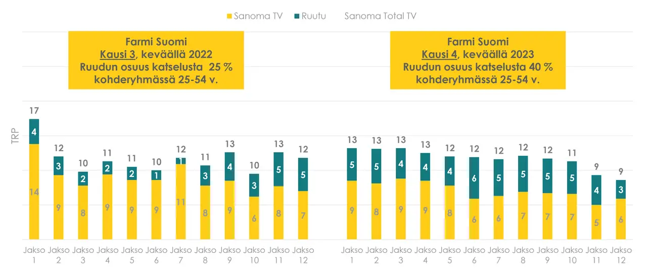 Farmi Suomi- jaksot 1-12: Ruudun osuus kasvanut 25−54 -vuotiaiden kohderyhmässä