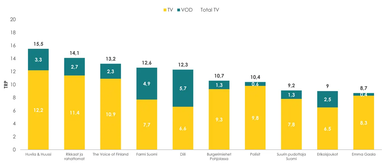 Suomalaiset viihtyivät keväällä 2023 tuttujen suosikkiohjelmien parissa