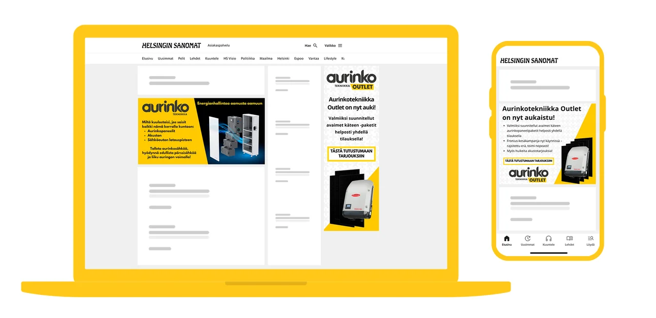 Sanoma Ad Managerin avulla Aurinkotekniikka on saanut enemmän liikennettä ja näkyvyyttä kuin vastaavilla somekampanjoilla sekä mahdollisuuden tavoittaa uusia yleisöjä Sanoman luotettavissa mediaympäristöissä.