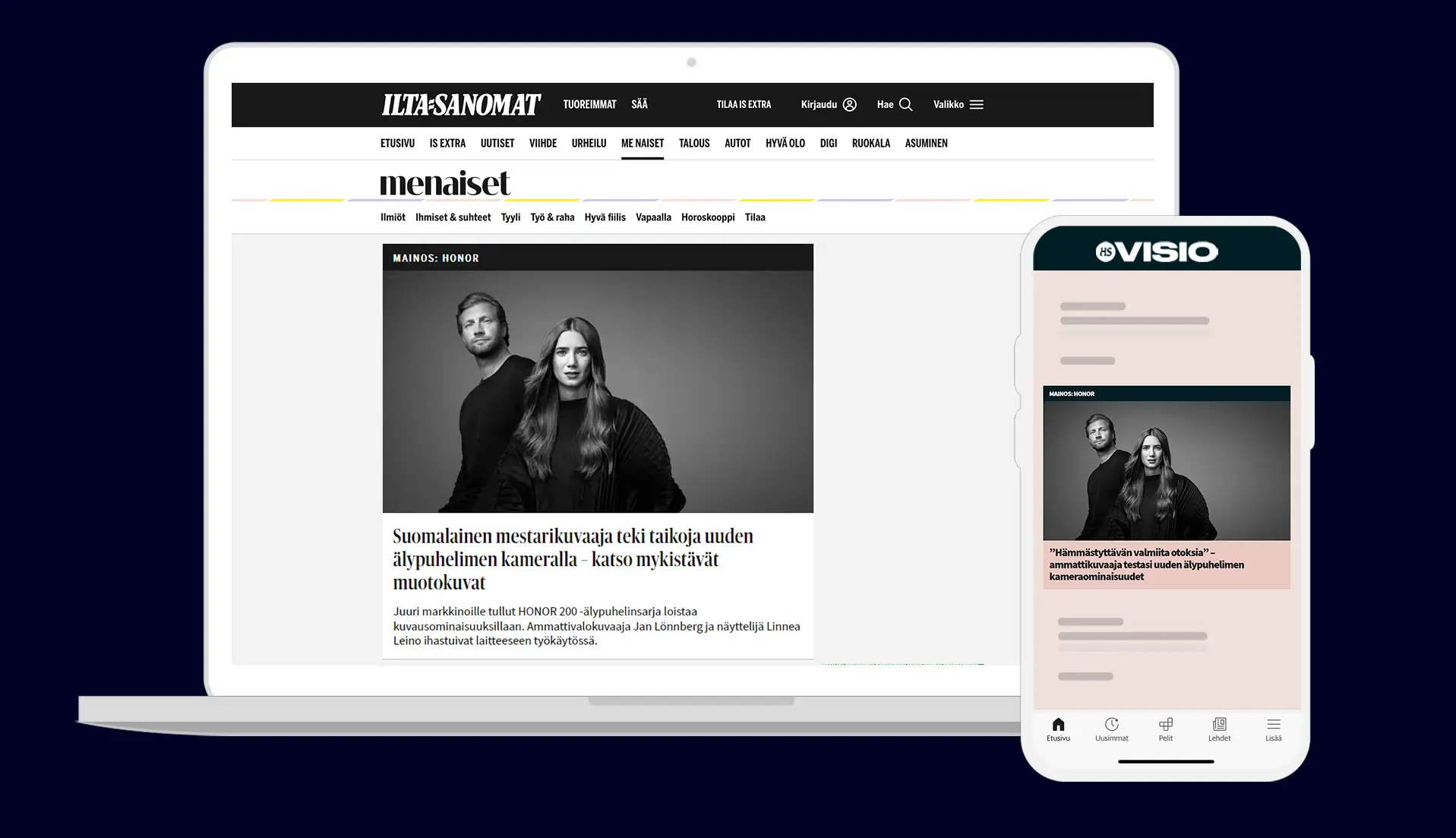 Honor 200 -sarjan puhelinten lanseerauskampanjassa haluttiin tuoda esiin niiden uniikkia muotokuvaominaisuutta. Kampanjaan kuului kaksi natiiviartikkelia IS.fi:n Me Naiset -osiossa ja HS.fi:n HS Visiossa sekä tulospohjaista natiivimainontaa Sanoman verkostossa kohdennettuna eri ryhmille, muun muassa designista, valokuvauksesta ja teknologiasta kiinnostuneille.