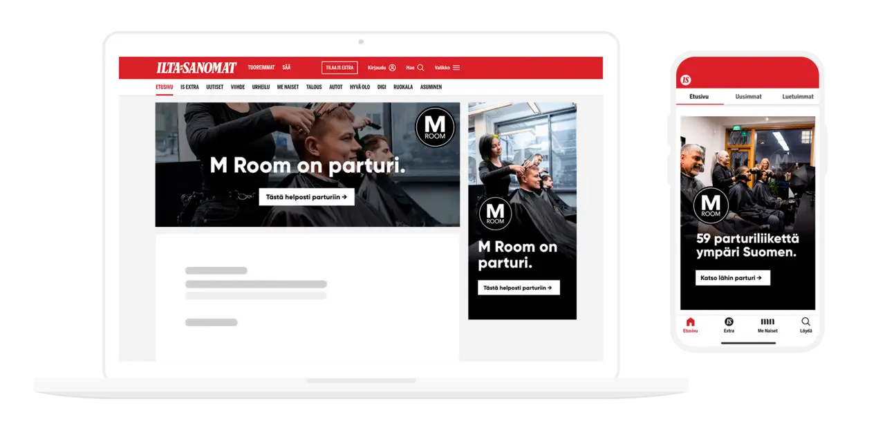 Vuonna 2008 perustettu parturiliikeketju M Room mittaa tarkasti markkinointinsa tehokkuutta ja tekee säännöllisesti kohdennettua digimainontaa somessa ja Sanoman kanavissa.