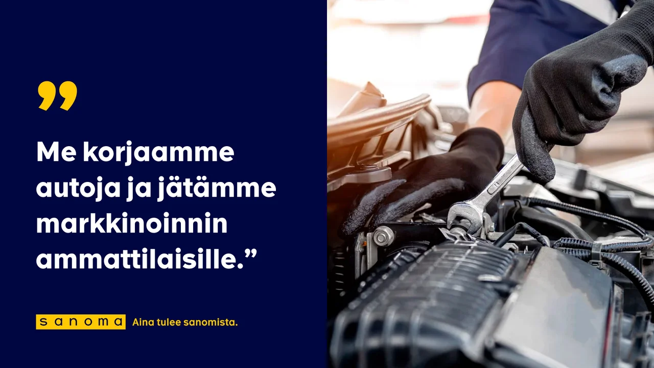 “Kaikkea ei kannata tehdä itse. Me korjataan autoja ja jätämme mainonnan ja markkinoinnin ammattilaisille.” Oma yhteyshenkilö, Saara Seikola, on tehnyt yhteistyöstä sujuvaa.
