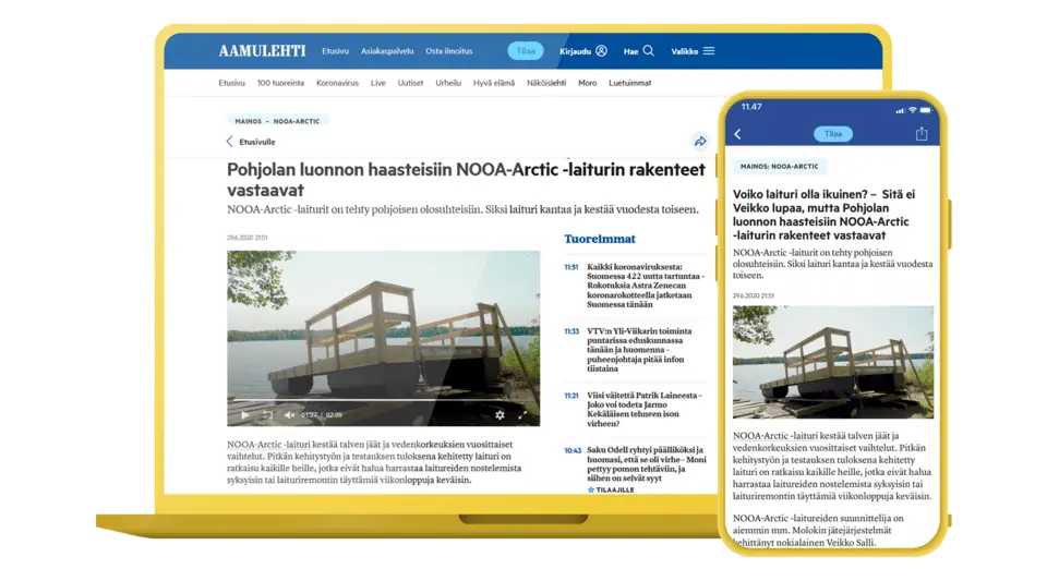 Yhdeksän kymmenestä NOOA-Arctic -laiturista ostetaan Aamulehdessä tehdyn markkinoinnin perusteella. Kahden natiiviartikkelin ja yhden videon ansiosta viime kesänä laitureita asennettiin yli kaksinkertainen määrä ennakoituun nähden.