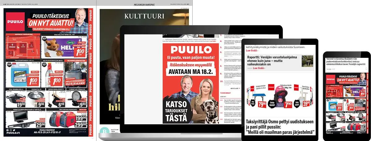 ”Puuilo on vielä suhteellisen tuntematon pääkaupunkiseudulla. Kampanjan tavoitteena oli avajaismainonnan lisäksi tuoda esiin Puuilon laajaa tuotevalikoimaa. Kampanjaan sisältyvässä arvonnassa sai esimerkiksi valita, mihin tuotekategoriaan lahjakortin käyttäisi ”, kertoo Client Manager Katja Himanen Sanoma Media Finlandista.