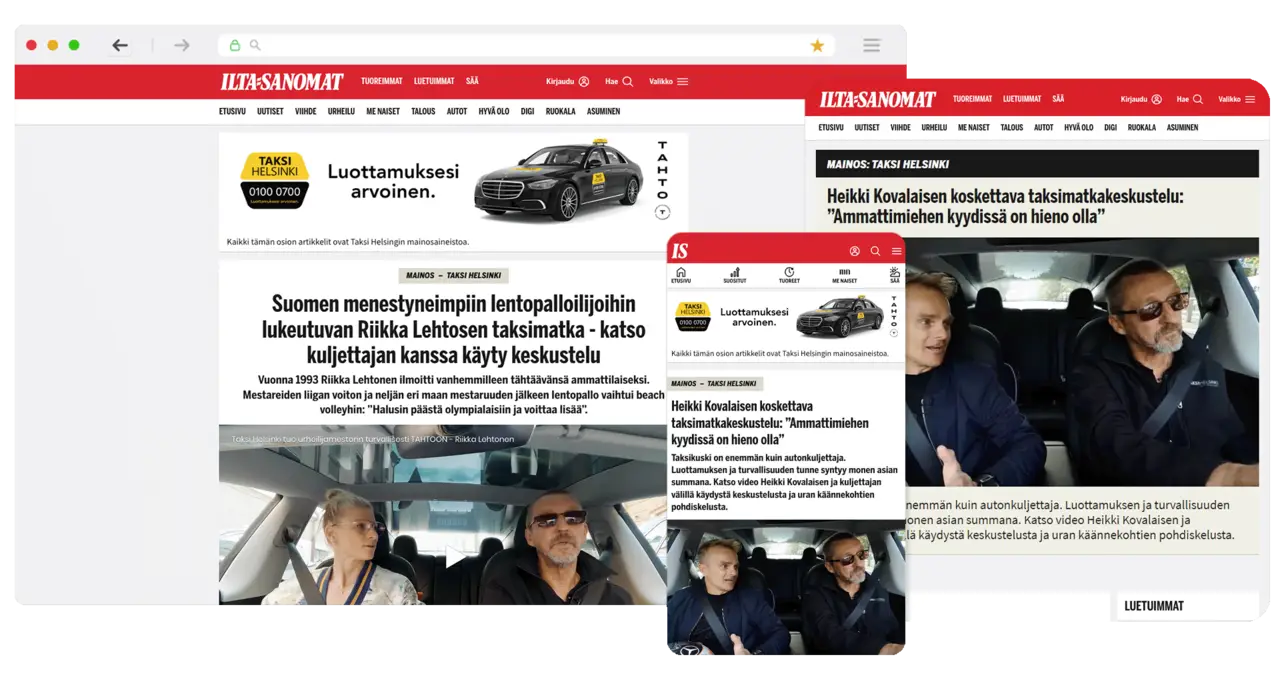 IS.fi:n natiivikampanjan lisäksi Taksi Helsingin ja Tahdon omissa kanavissa julkaistiin yhteistyön tiiseröintisisältöjä.