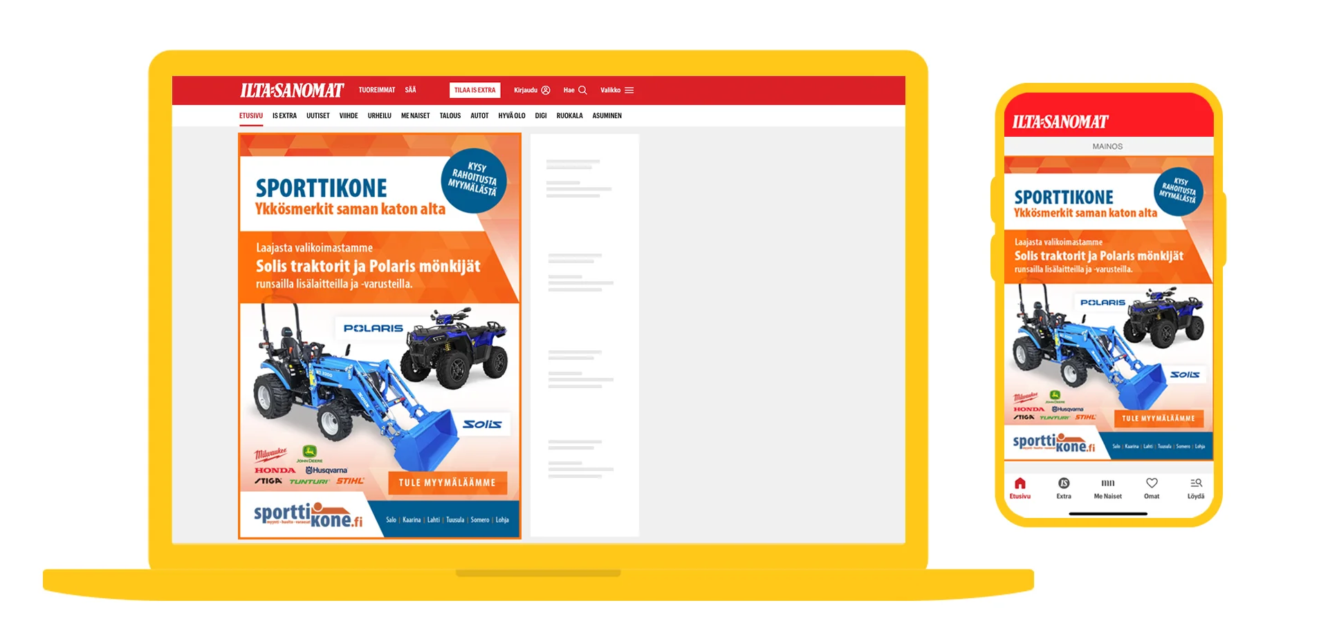 Sporttikoneen markkinointi on saanut Sanoma-yhteistyön myötä uudenlaista ilmettä myös visuaalisesti.