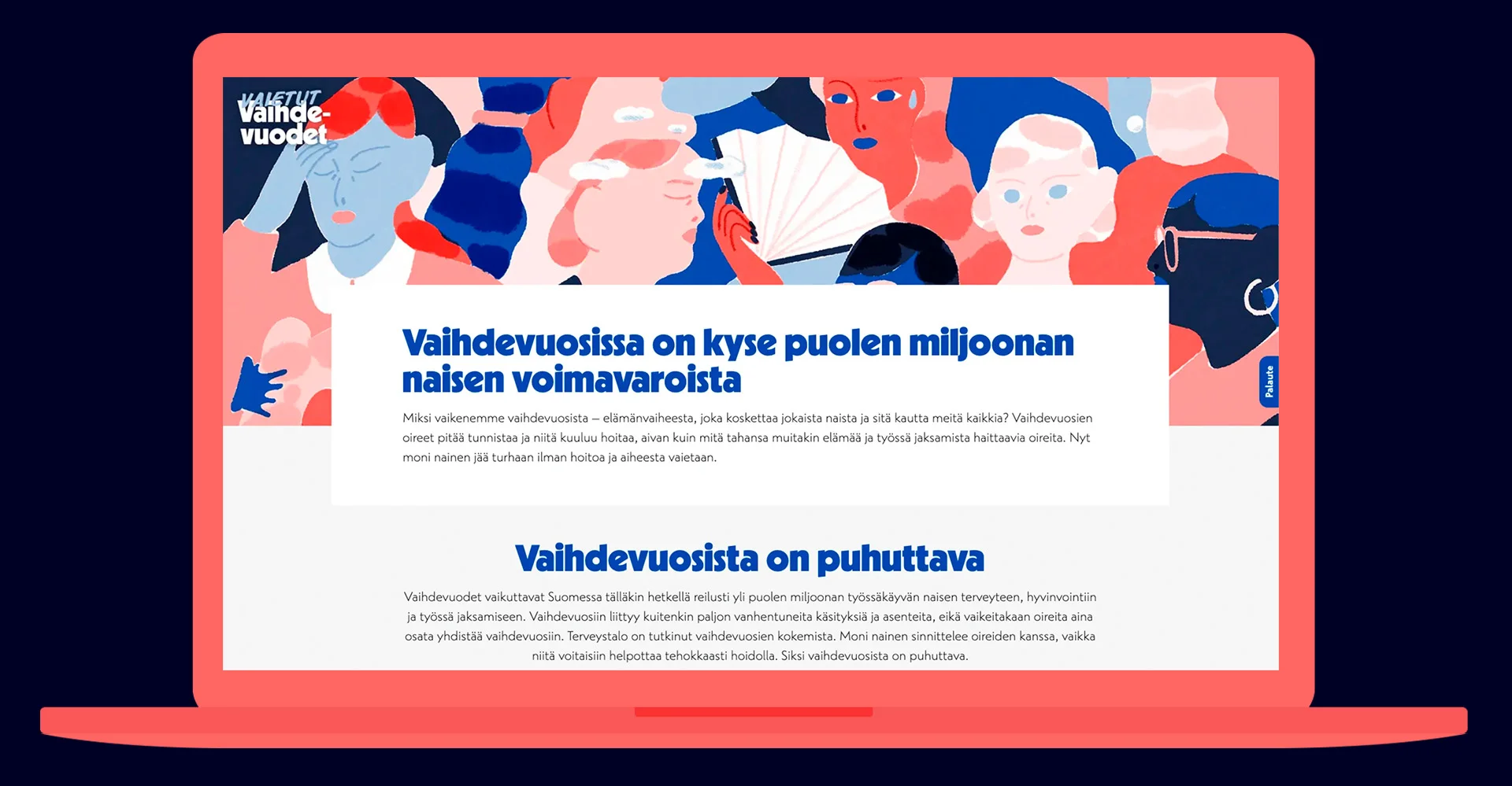 Vaihdevuodet koskettavat jokaista naista ja vaikuttavat tälläkin hetkellä Suomessa yli puolen miljoonan työssäkäyvän naisen terveyteen ja hyvinvointiin. Vaihdevuosiin liittyy kuitenkin paljon vanhentuneita käsityksiä ja stigmaa, eikä vaikeitakaan oireita aina osata yhdistää vaihdevuosiin – ja siksi moni nainen jää turhaan ilman hoitoa.