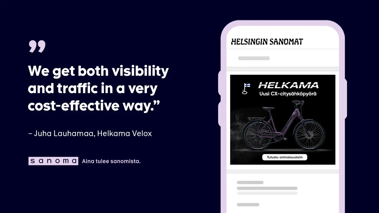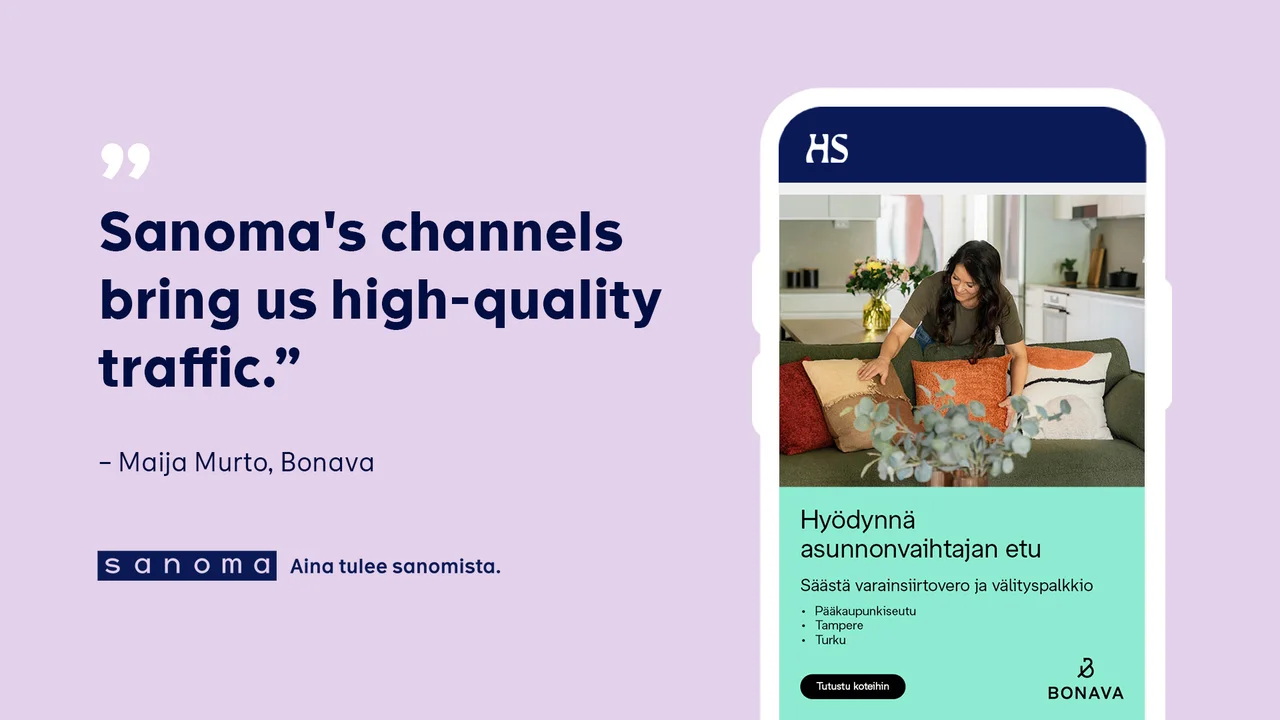 "We get high-quality traffic from Sanoma's channels, which means that there are no 'spur-of-the-moment' clicks on our website. We have reached the right audience," says Murto.