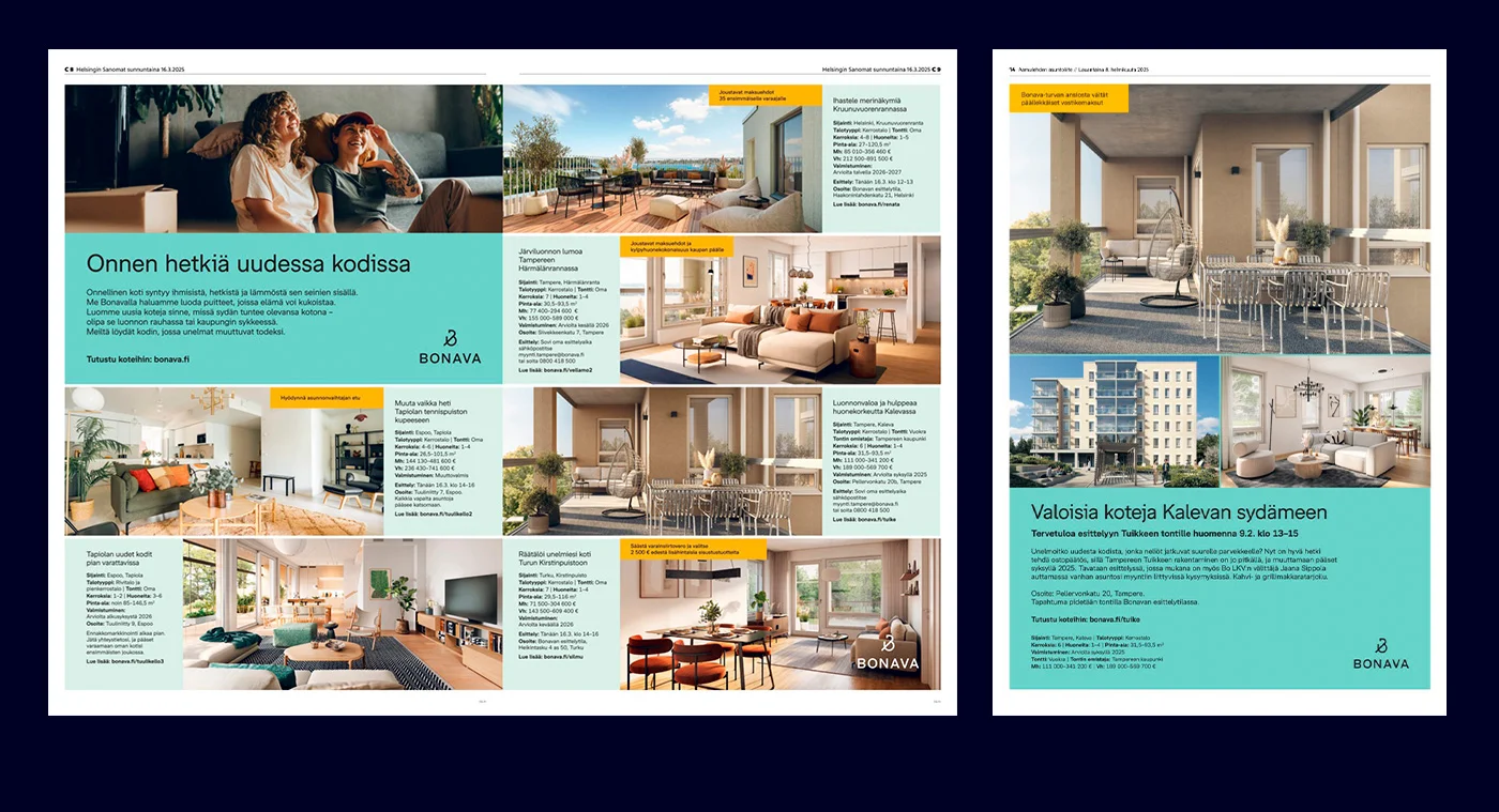 Bonava has been advertising once a month in the Helsingin Sanomat home section. In addition, advertising has been carried out in Sanoma's digital network.