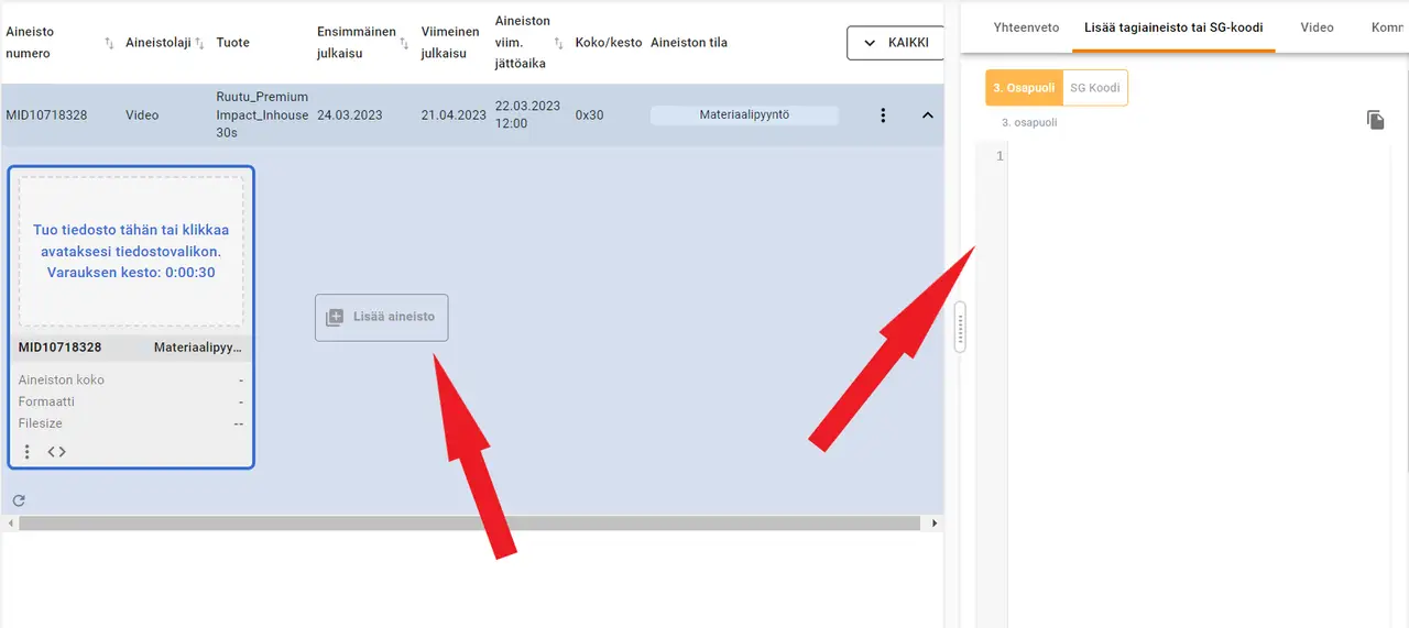 When a campaign has been confirmed, an upload link will be sent for submitting the ad material. The upload link is campaign-specific and valid for display, cpc and video campaigns the entire duration of the campaign. For print campaigns the link is valid until Sanoma has handled the campaign and the status is sent.